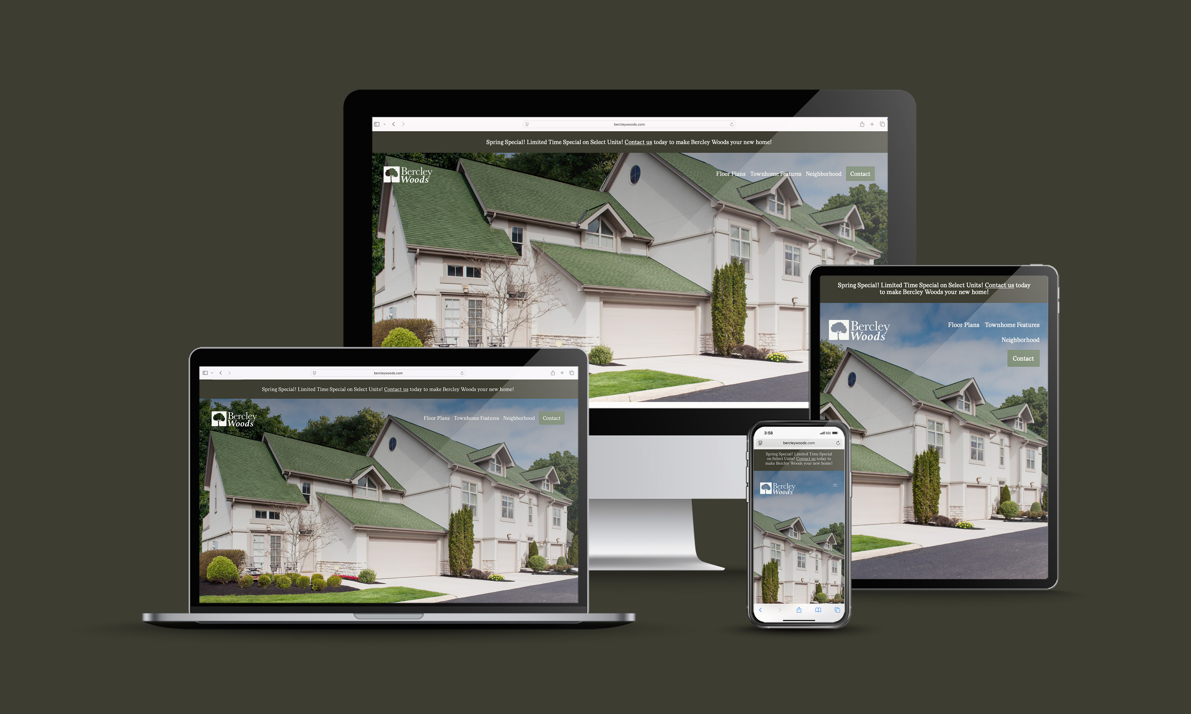 Project Statement: For Bercley Woods Townhomes, the goal was to create a completely new brand identity that reflected the property’s luxurious yet secluded atmosphere. I started by designing a custom logo inspired by the dense tree canopy surrounding the townhomes. Thus tying the brand directly to its natural, serene setting. From there, I designed the website from the ground up, creating a refined, modern look and feel that emphasized privacy, elegance, and a strong connection to nature. I also handled all photo editing to enhance the visual storytelling and ensure a cohesive aesthetic throughout.